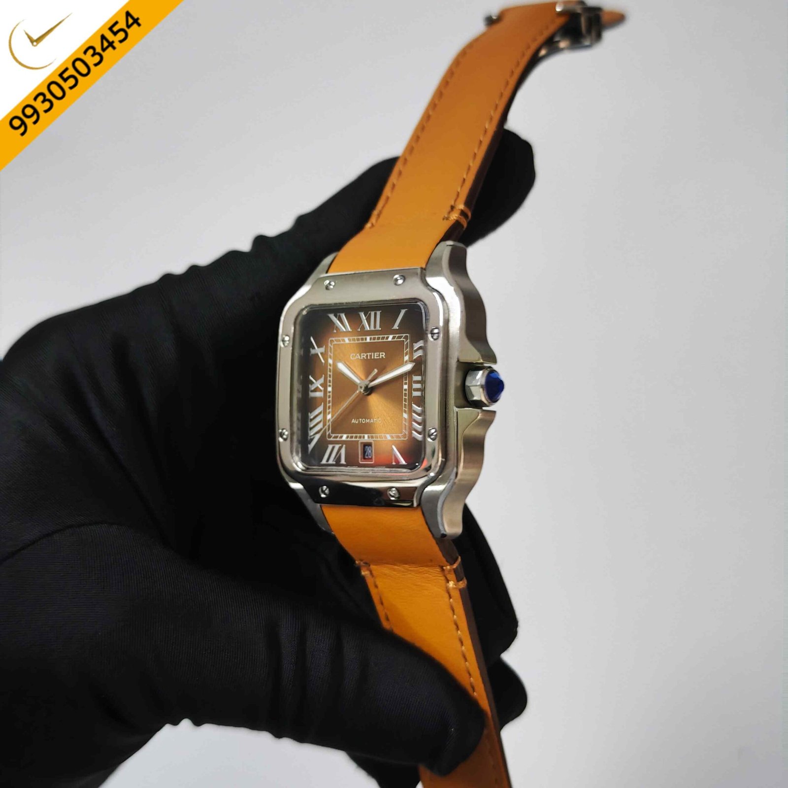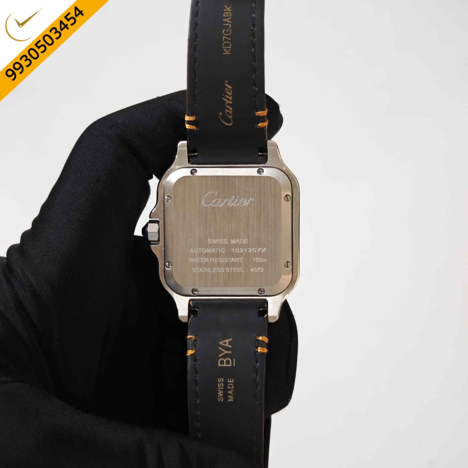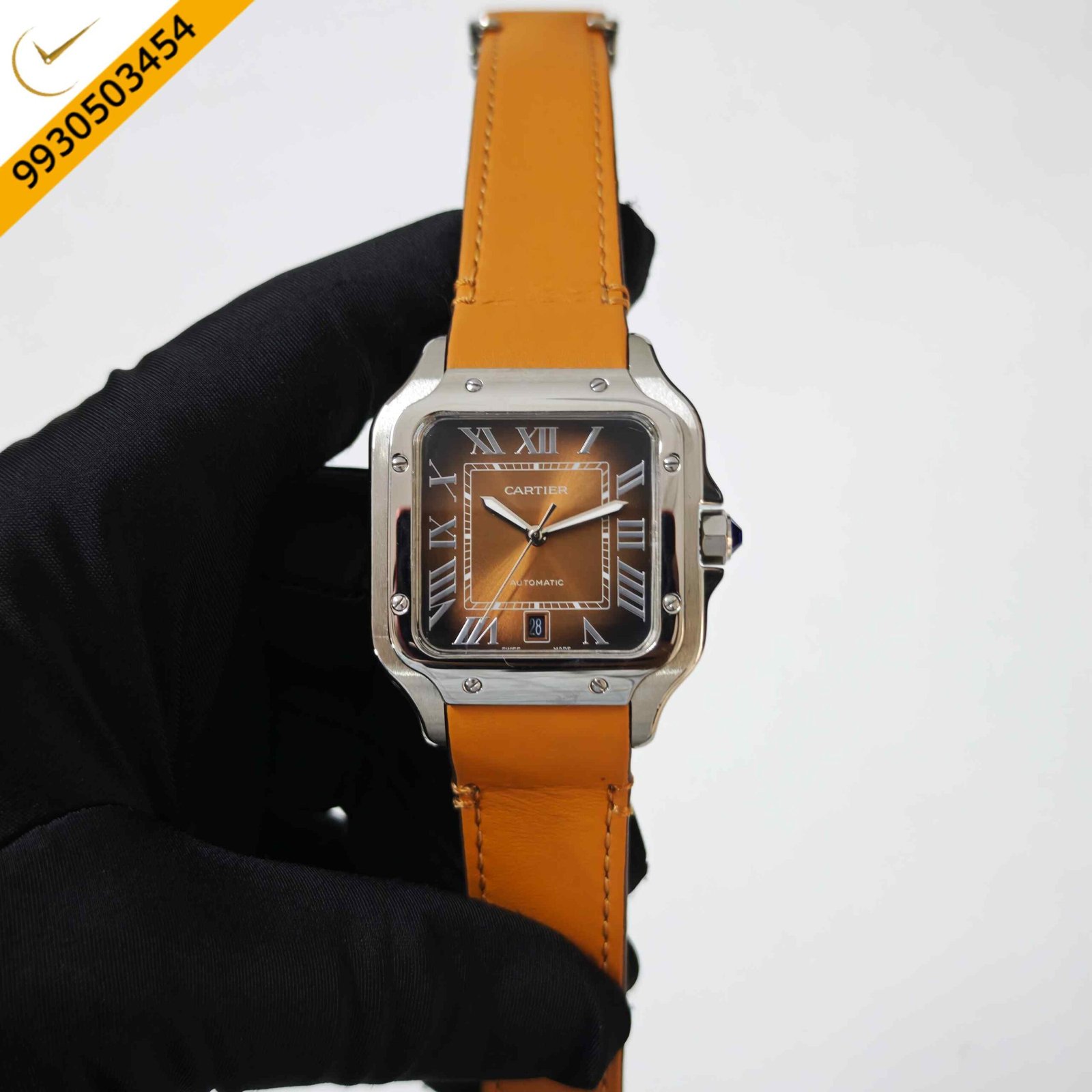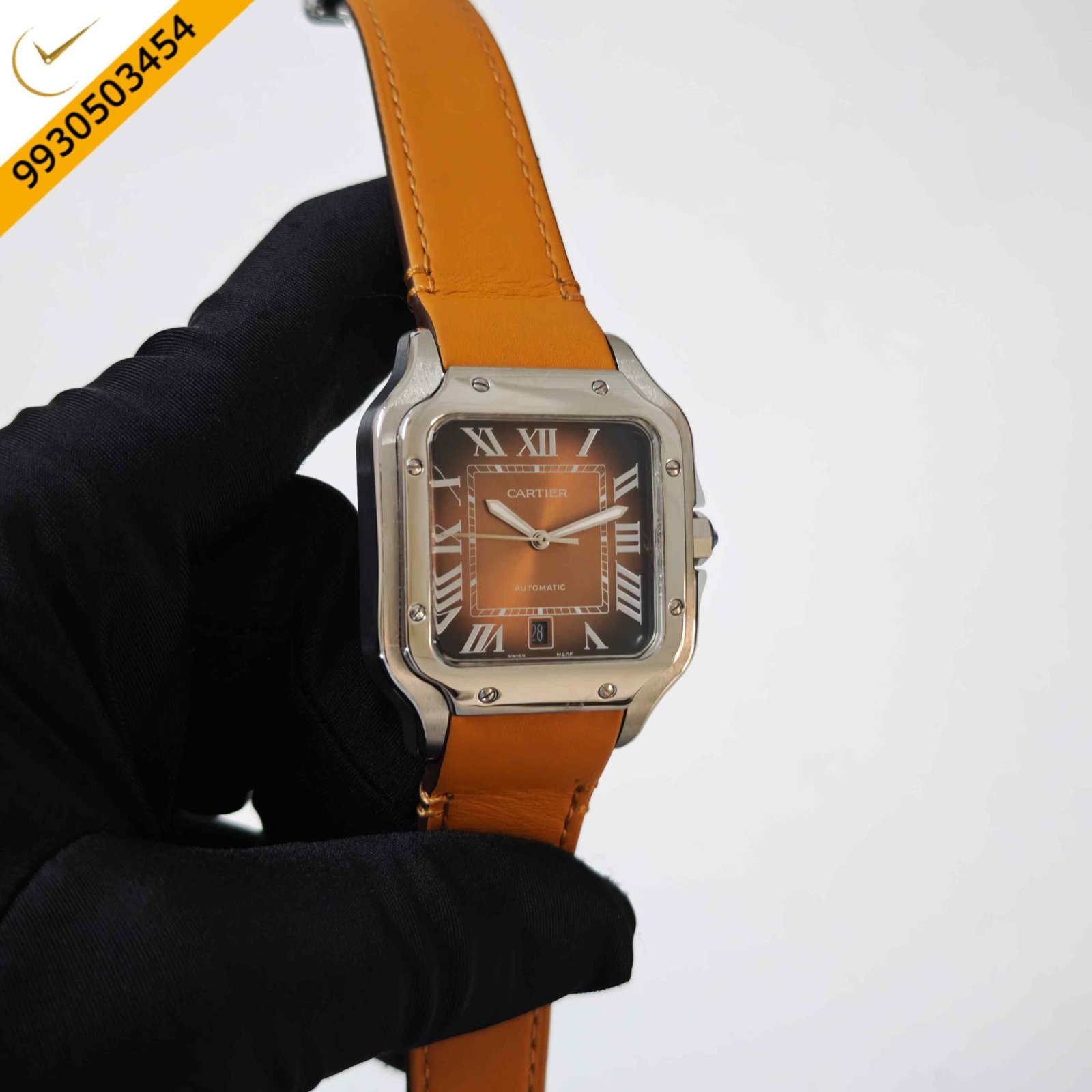 Cartier Santos de Steel Sunray Brown Dial Leather Strap Swiss Automatic Watch