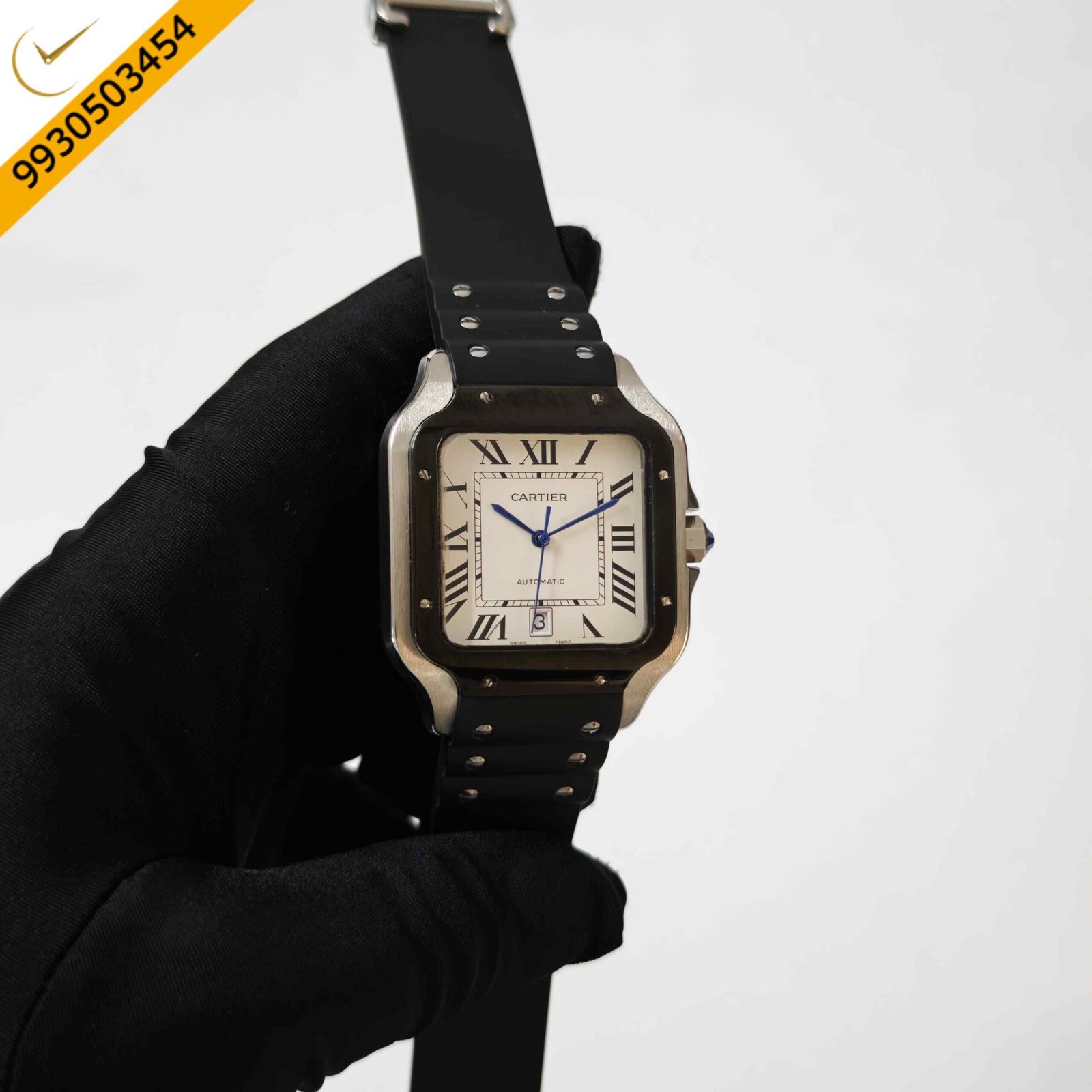Cartier Santos de Steel White Dial Black Rubber Strap Swiss Automatic Watch