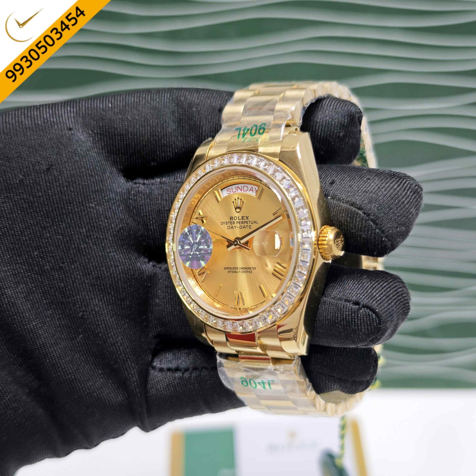 Rolex Day-Date Full Gold Diamond Bezel Roman Marker Golden Dial Swiss Automatic Watch