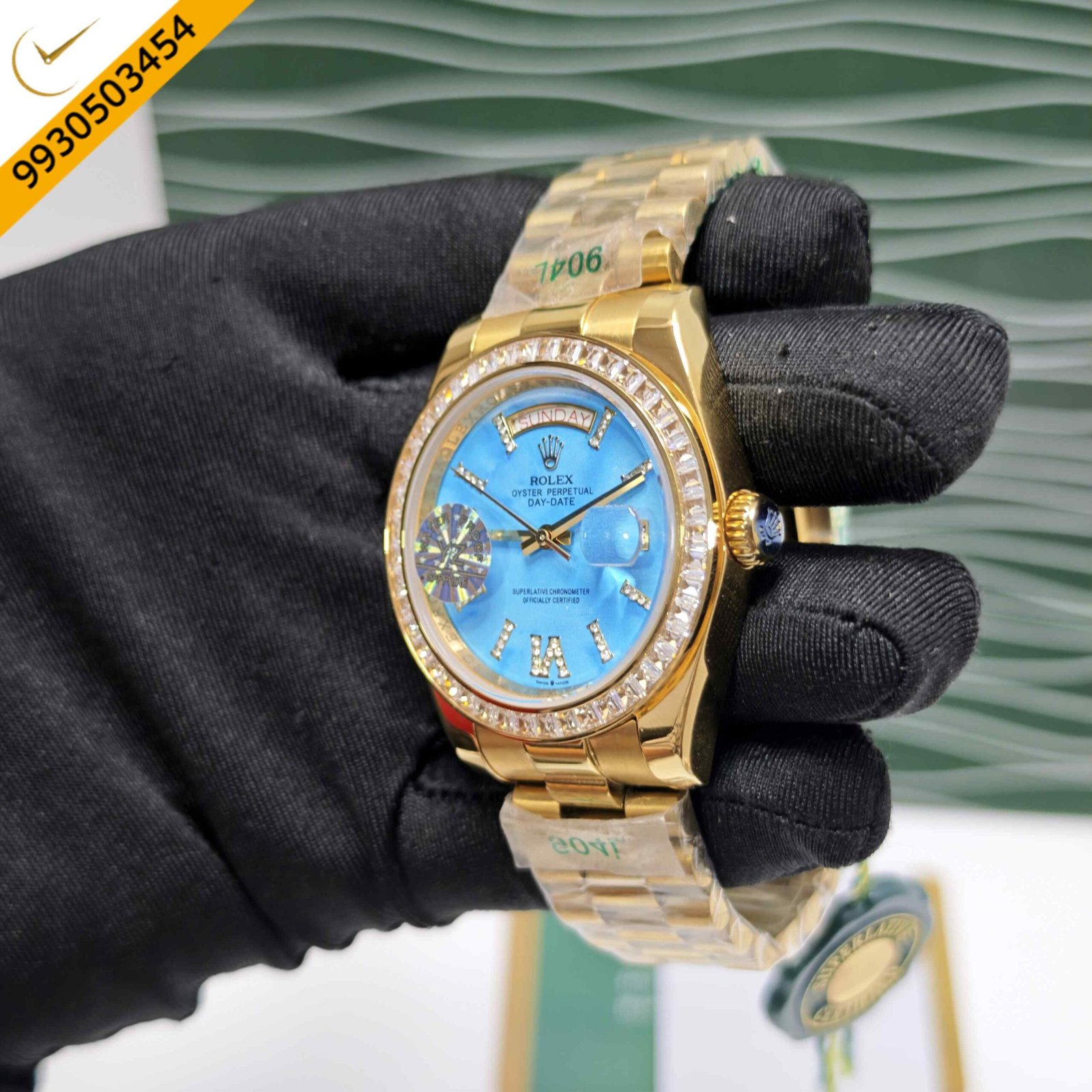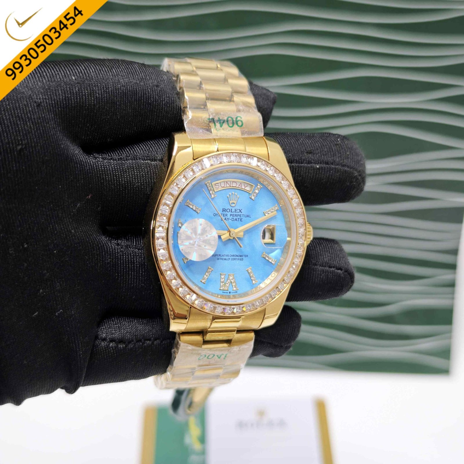 Rolex Day-Date Full Gold Diamond Bezel Roman Marker Tiffany Dial Swiss Automatic Watch