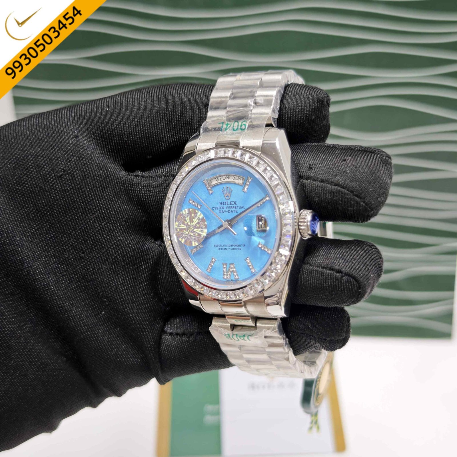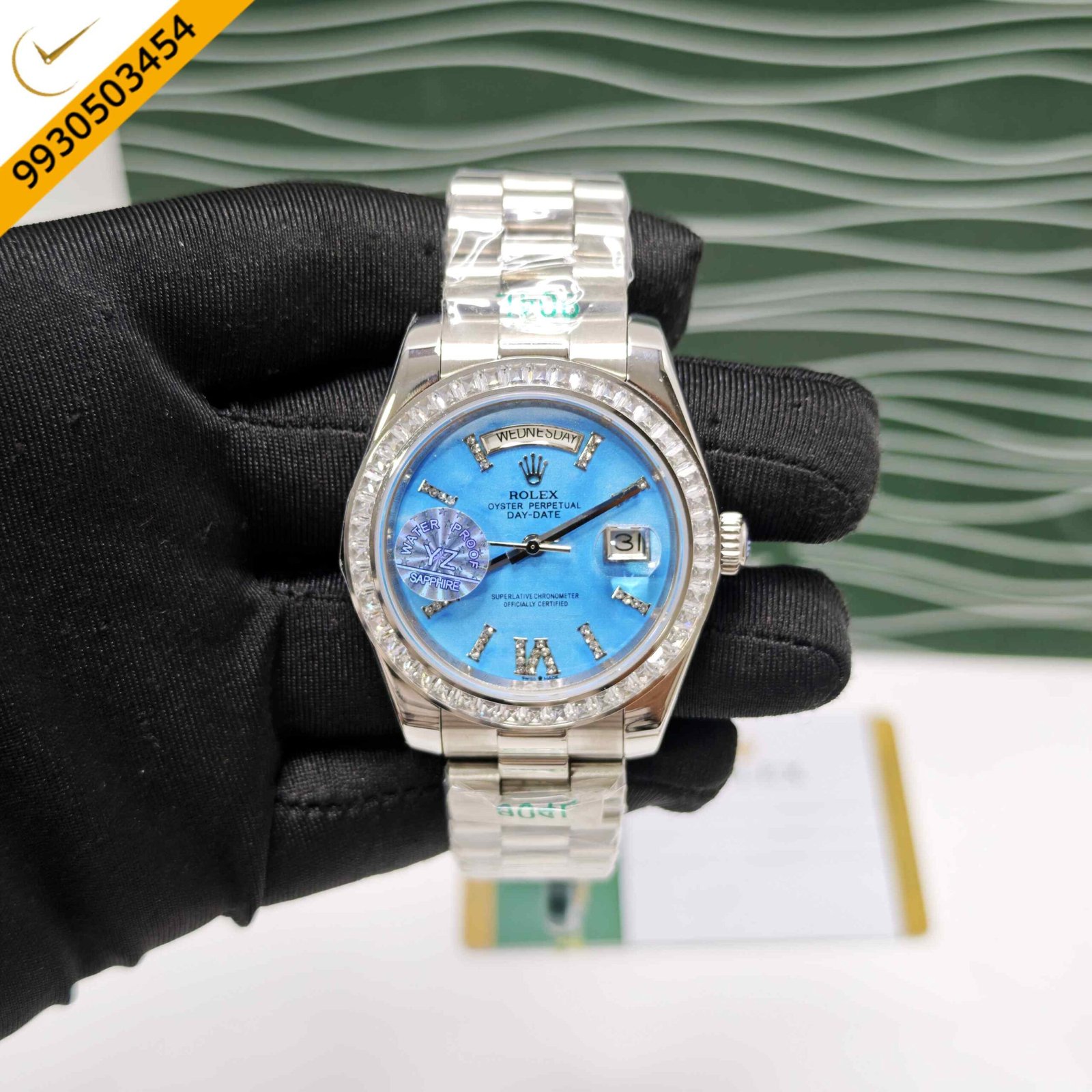 Rolex Day-Date Steel Diamond Bezel Roman Marker Tiffany Dial Swiss Automatic Watch