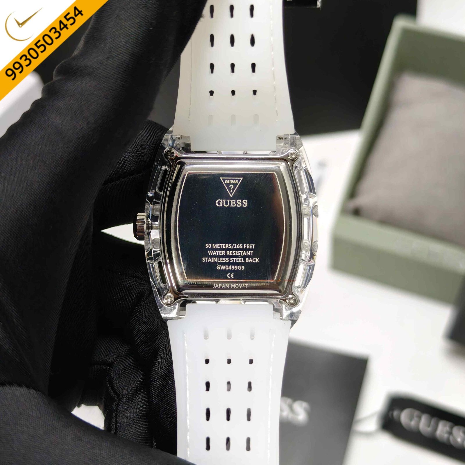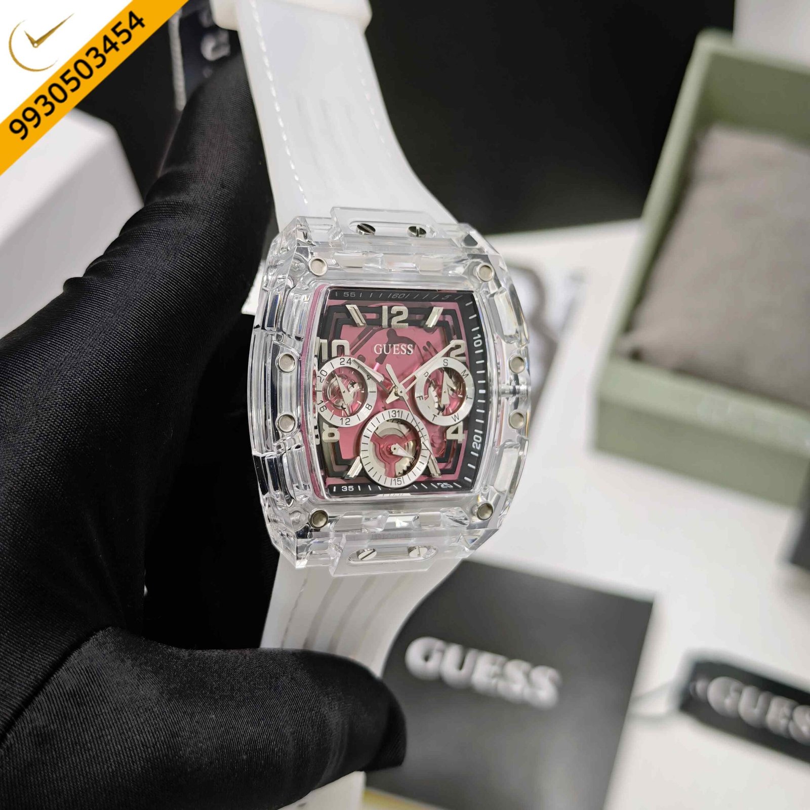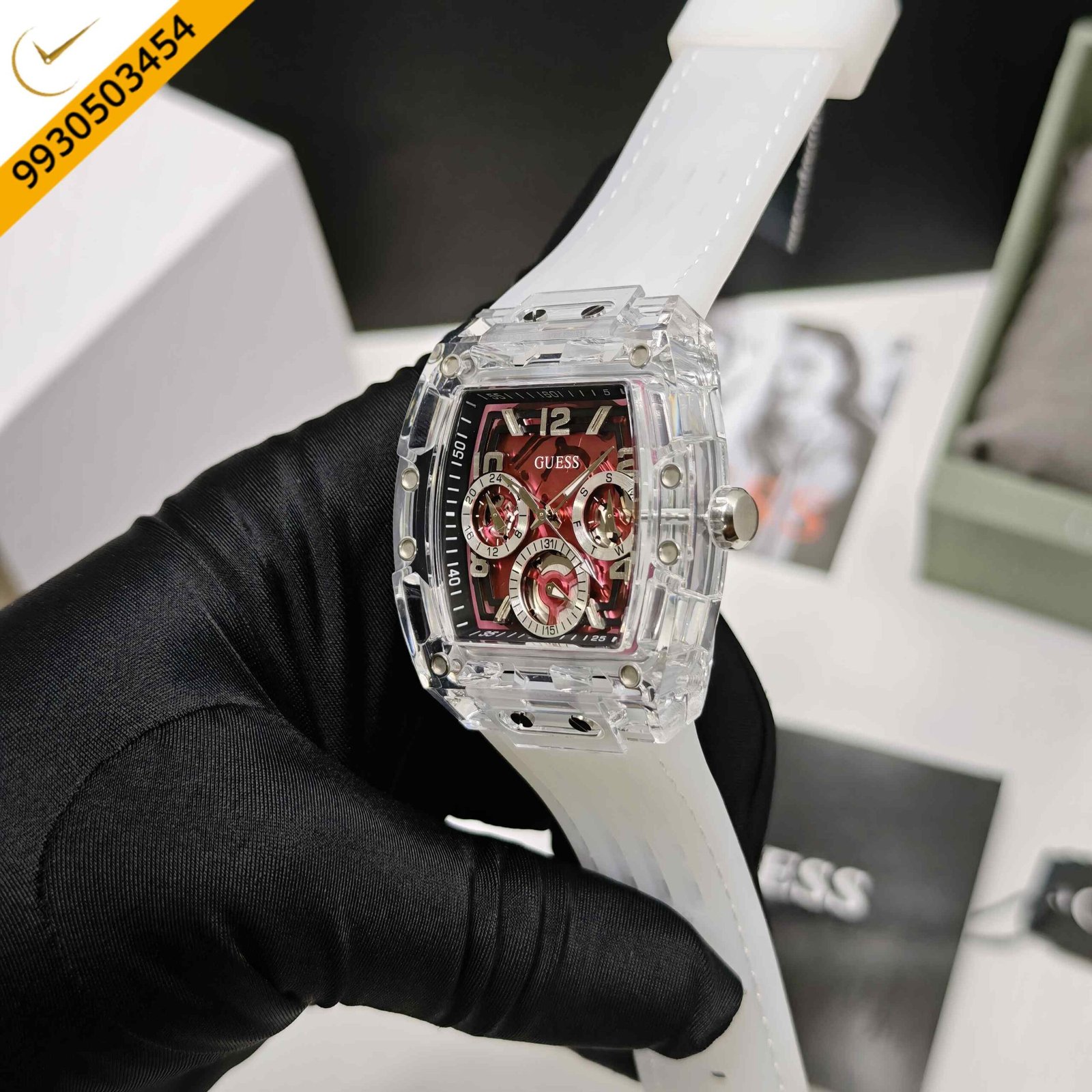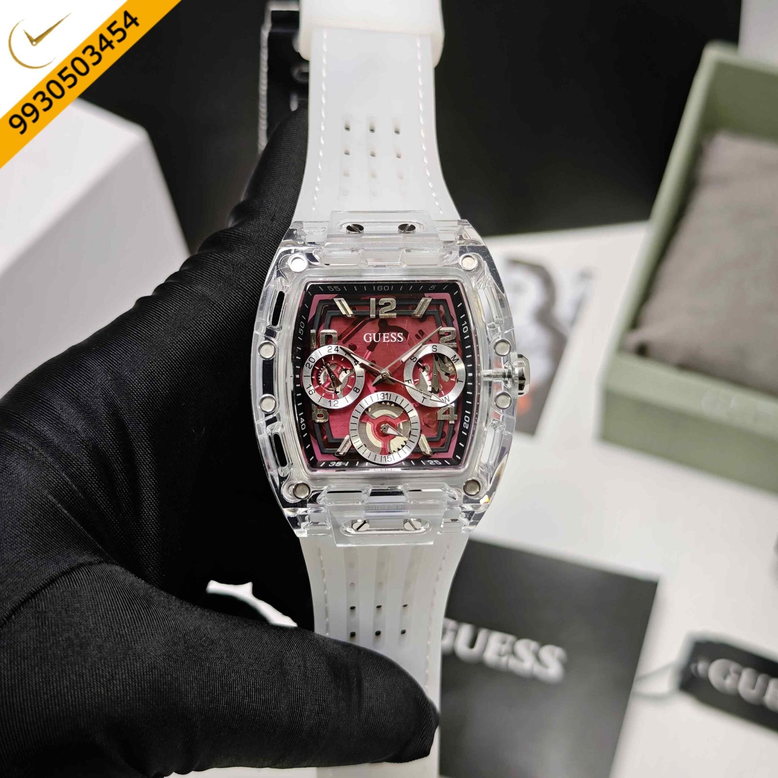 Guess Chronograph Red Dial White Rubber Strap Swiss Watch