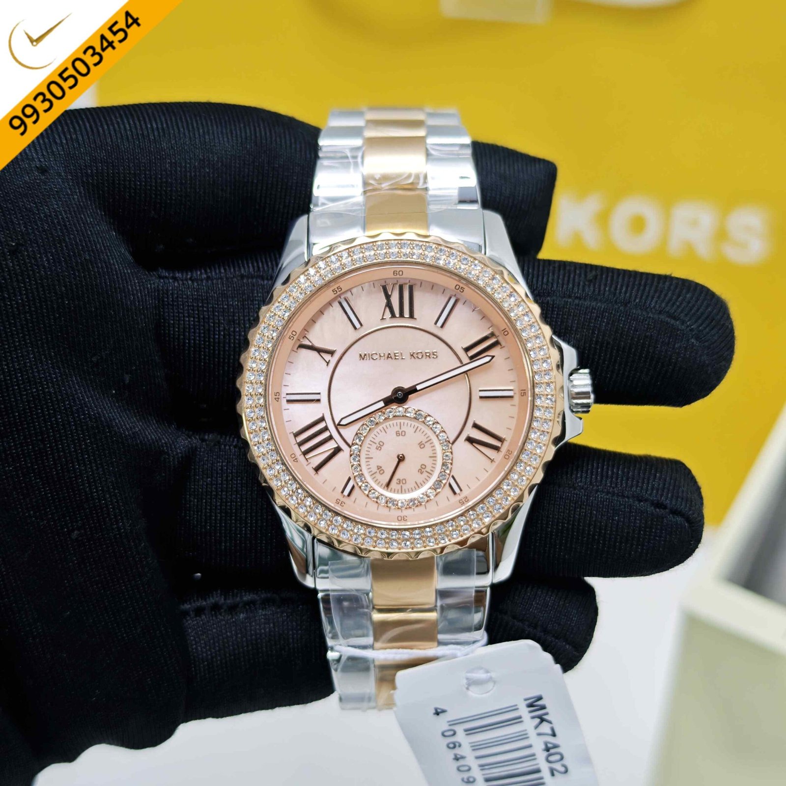Michael Kors Everest Mother-Of-Pearl MK7402 Steel Rose Gold Diamond Dial Swiss Watch