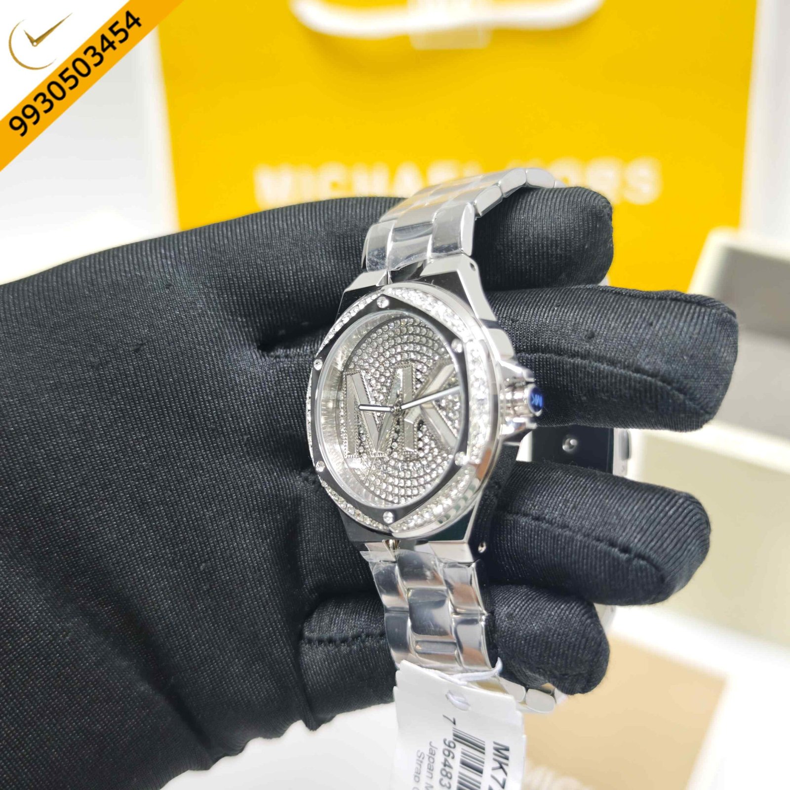 Dial: White Diamond-Studded Dial with Bold “MK” Logo