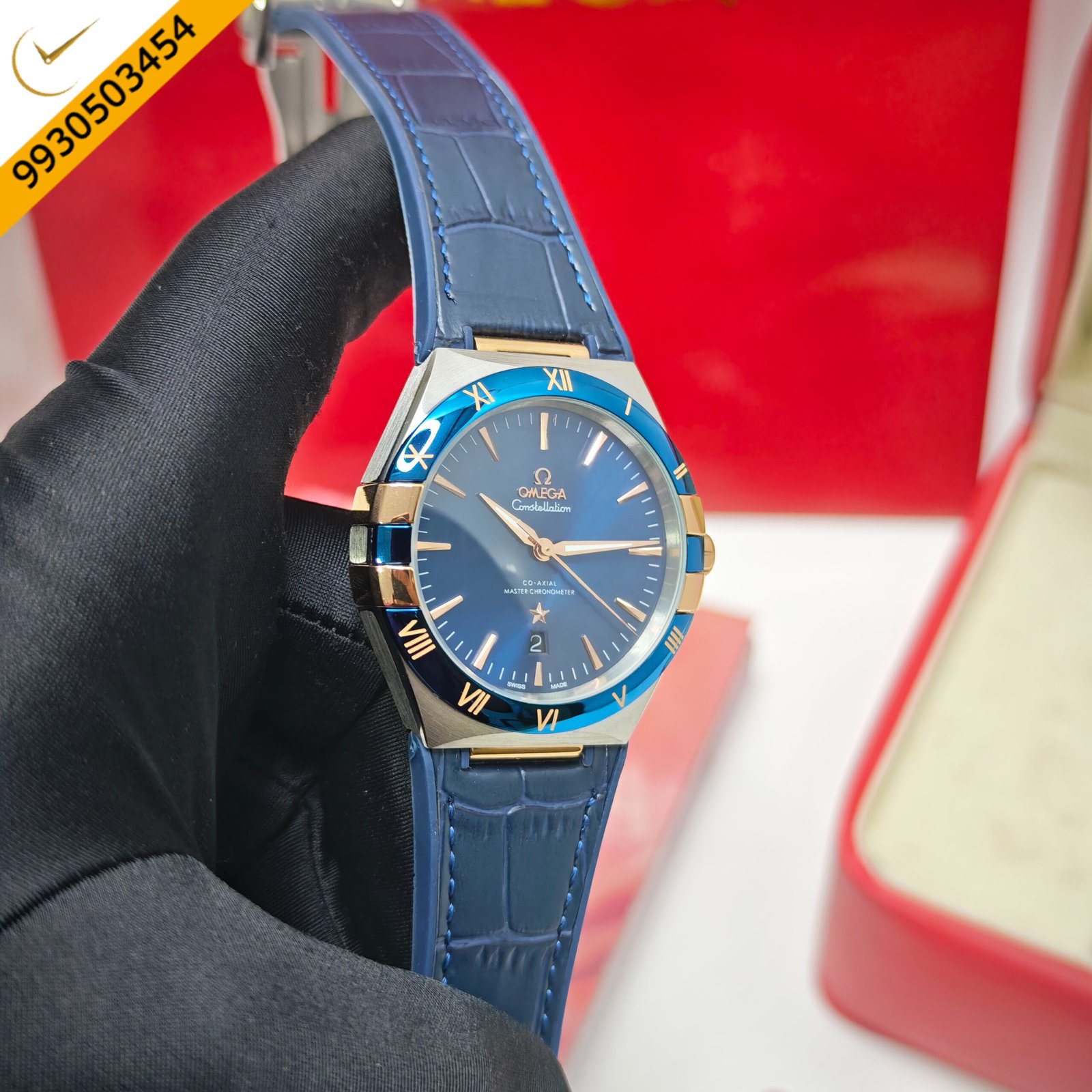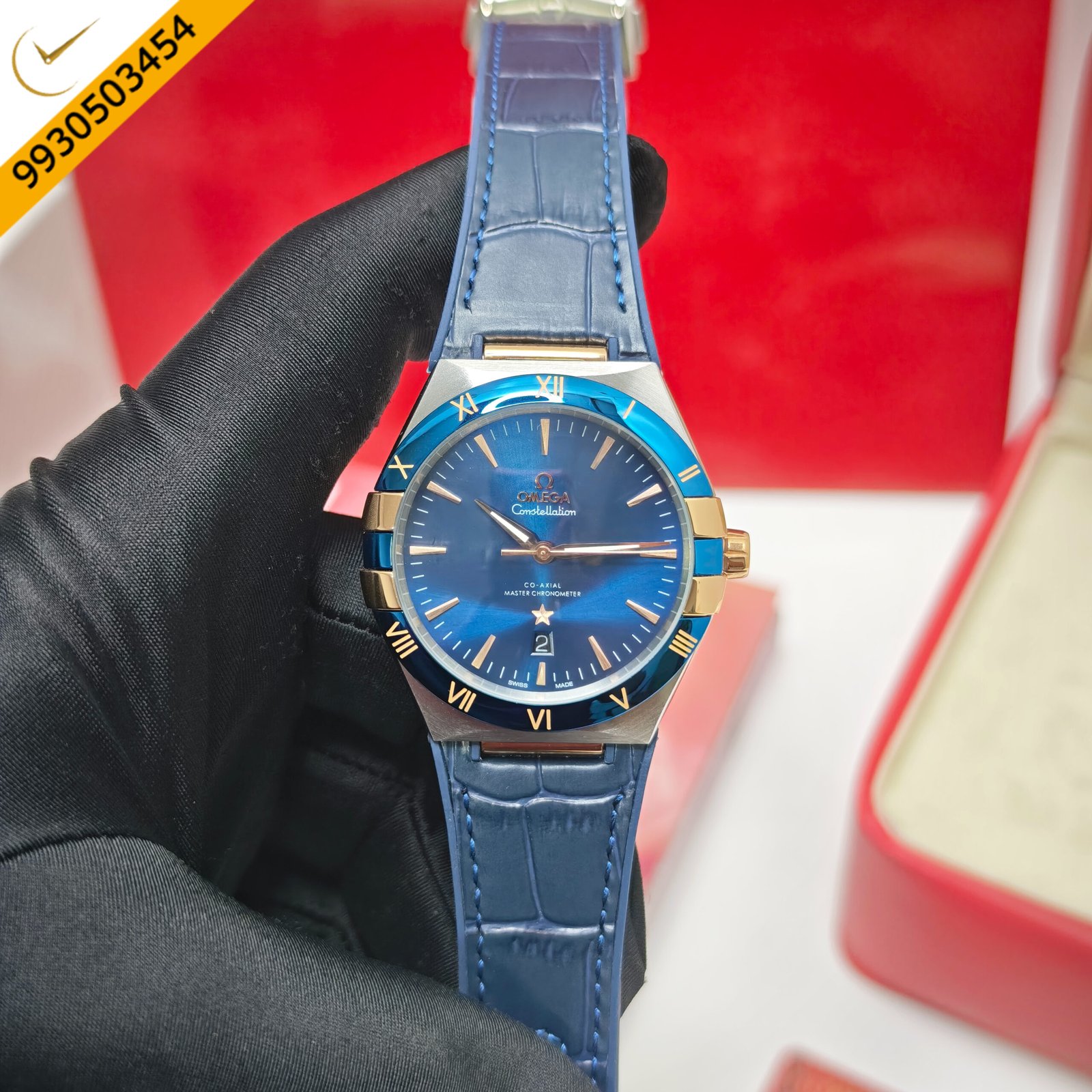 Omega Constellation Co-Axial Master Chronometer Rose Gold Blue dial Blue Leather Swiss Automatic Watch