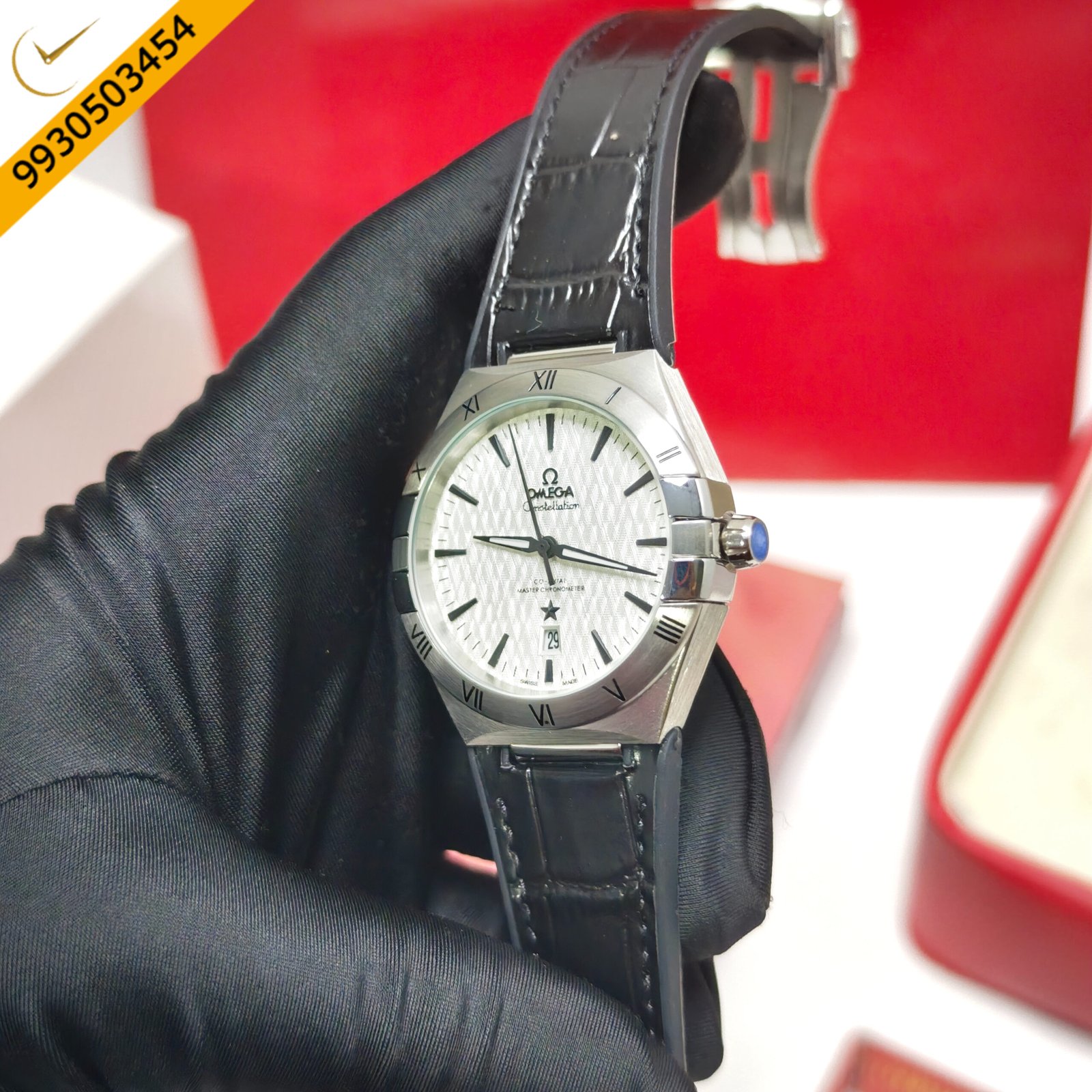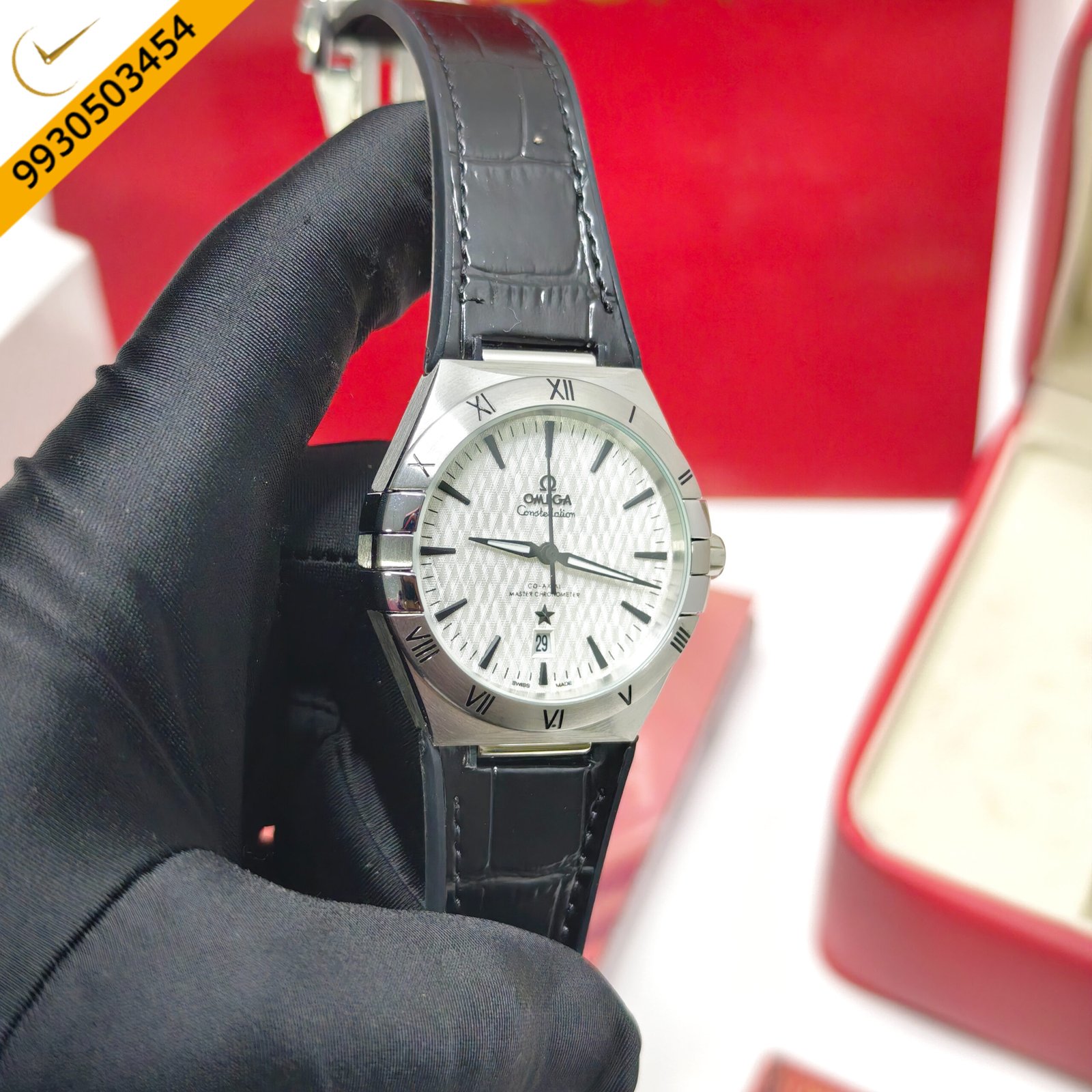 Omega Constellation Co-Axial Master Chronometer Steel White Dial Black Leather Swiss Automatic Watch