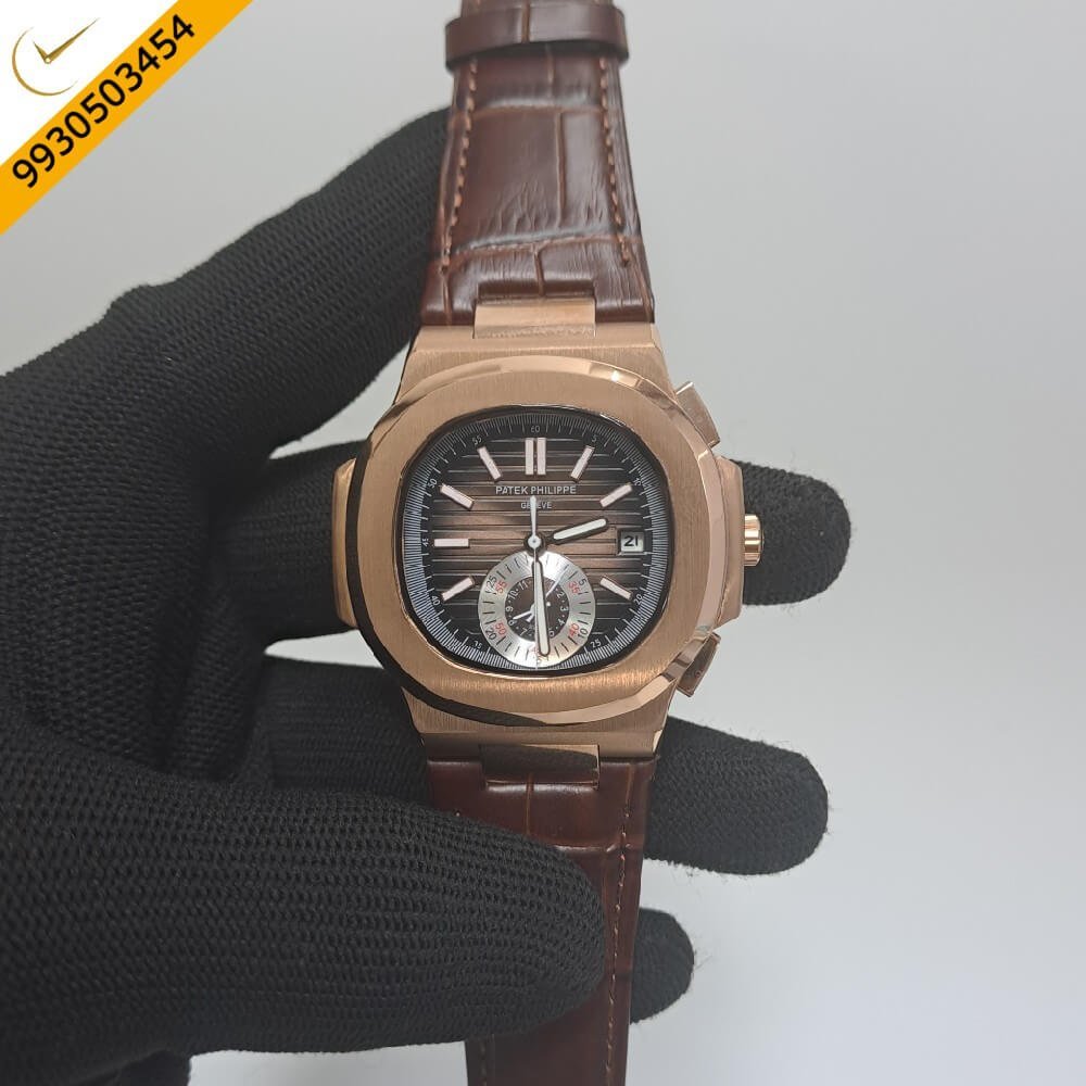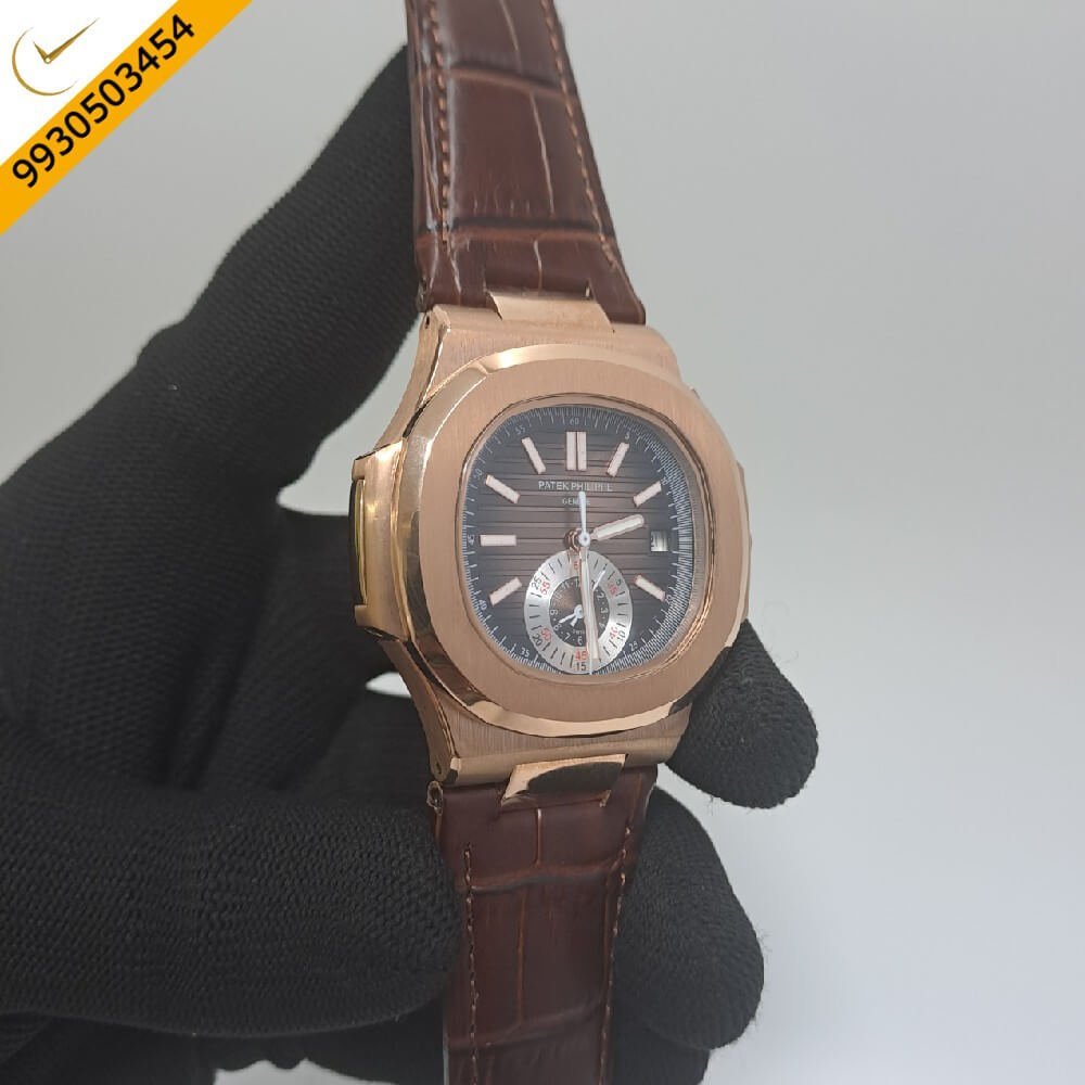 Patek Philippe Nautilus Annual Calendar Moon Phase Brown Leather Strap Swiss Automatic Watch