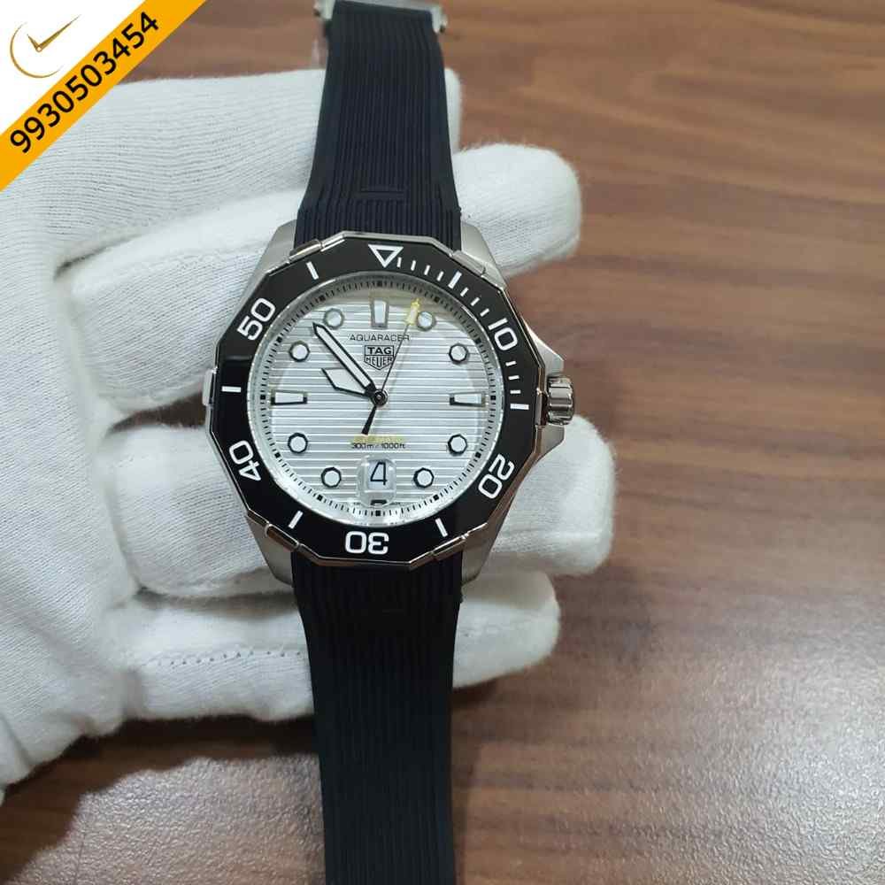 TAG Heuer Aquaracer Calibre 5 Professional 300 white Diver Black Rubber Strap Swiss Automatic Watch