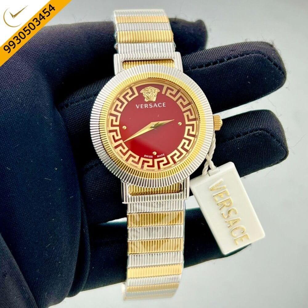 Versace Gold Watch Red Dial Dual Tone Strap Quartz Watch