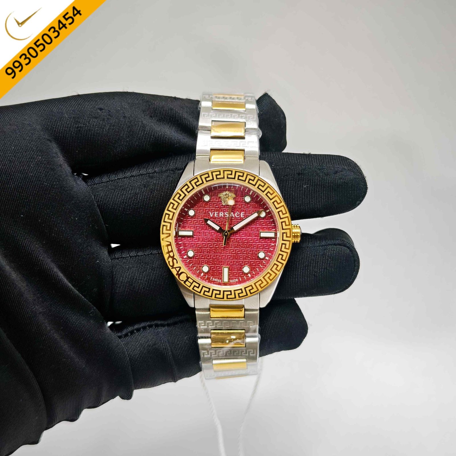 Versace Greca Dome Steel Red Dial Dual Tone Swiss Quartz Watch