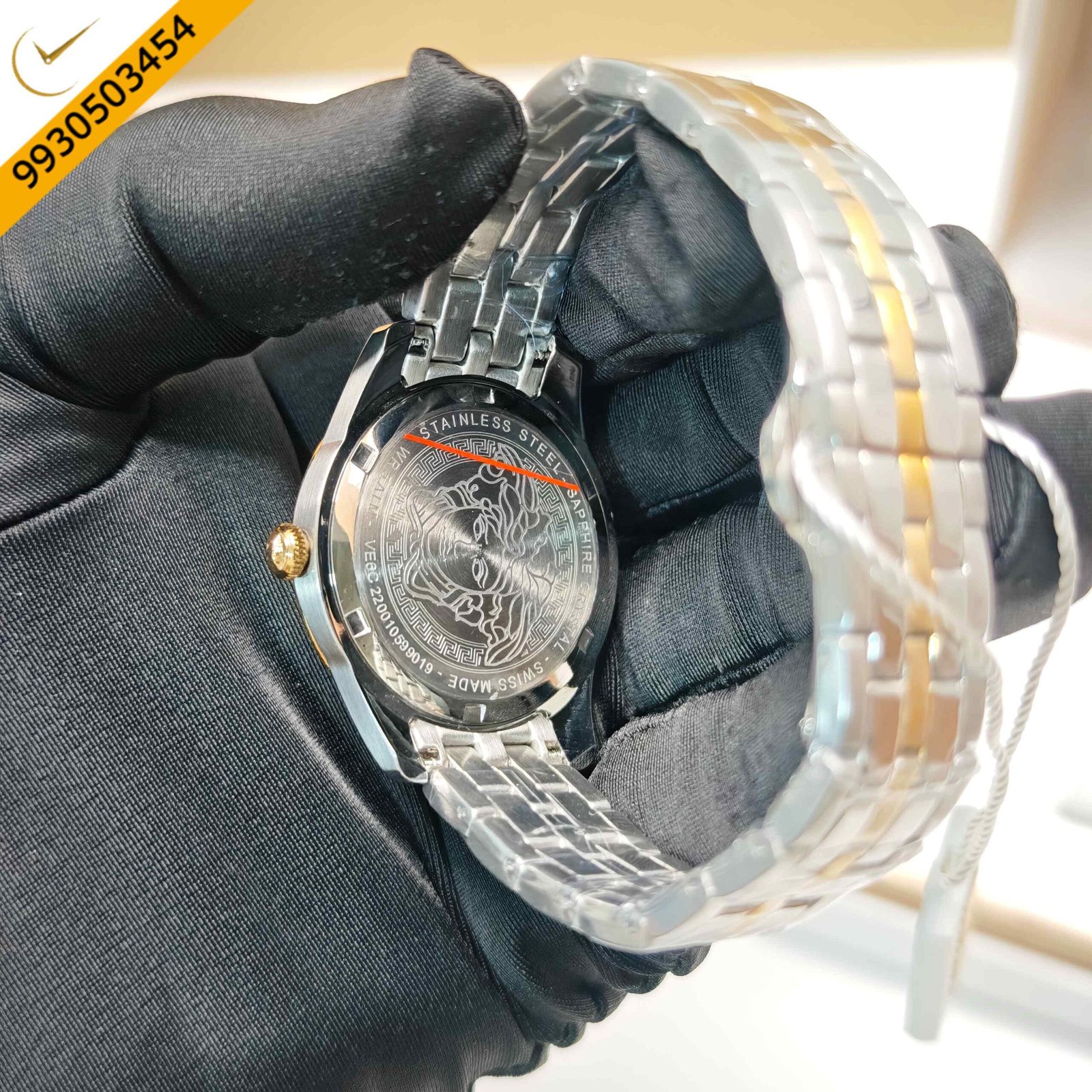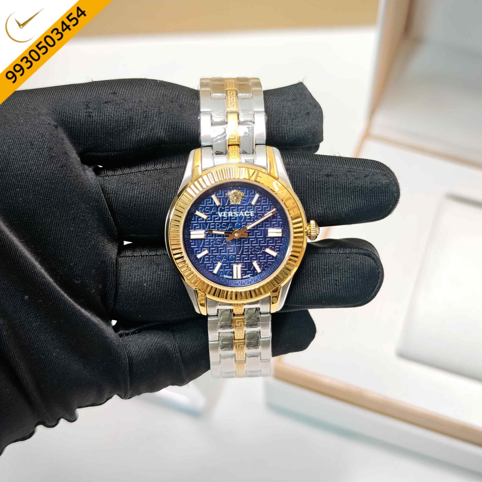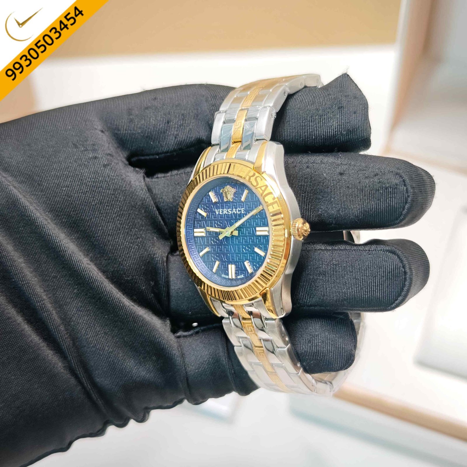 Versace Greca Golden Blue Dial Dual Tone Swiss Watch