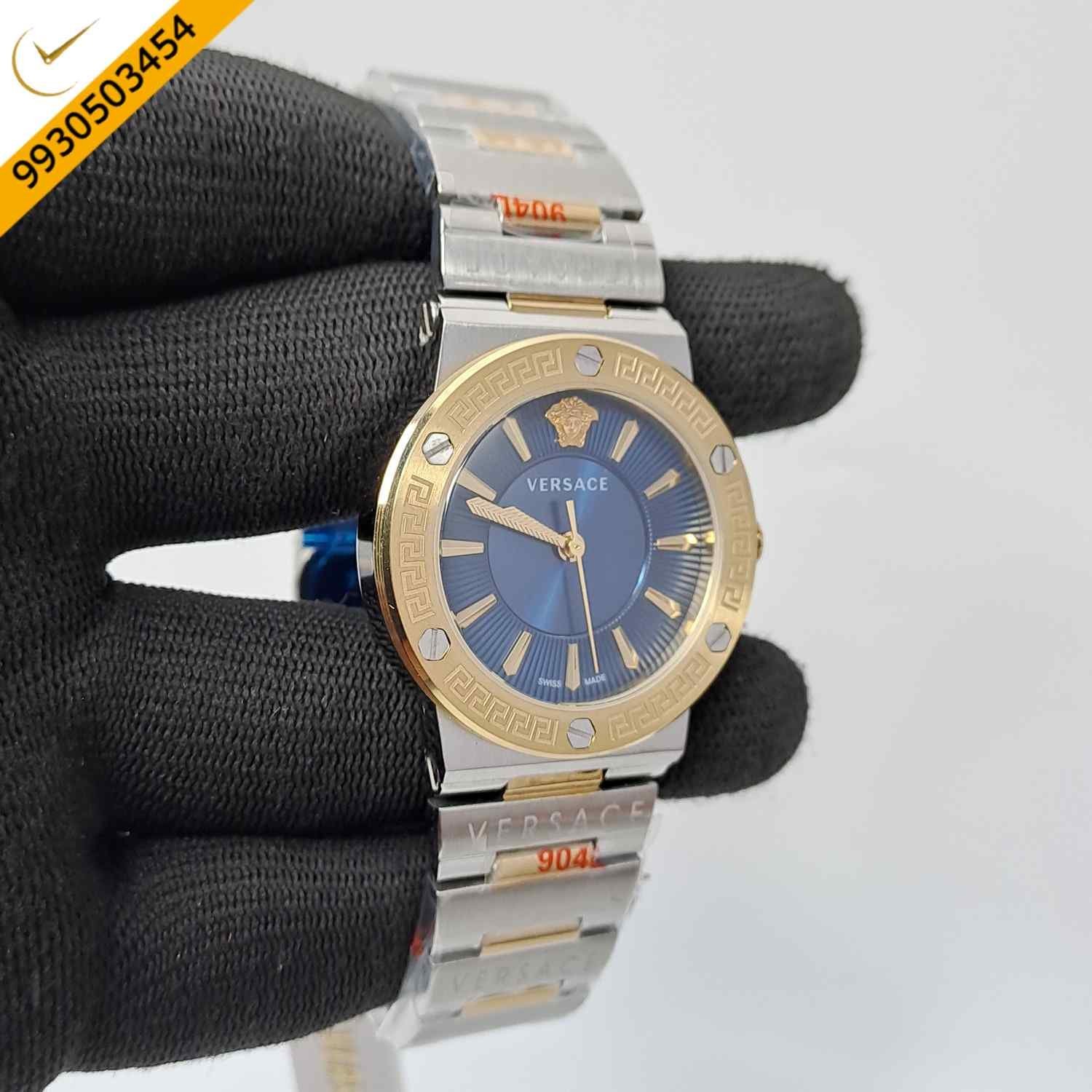Versace Greca Logo Dual Tone Blue Dial Swiss Watch