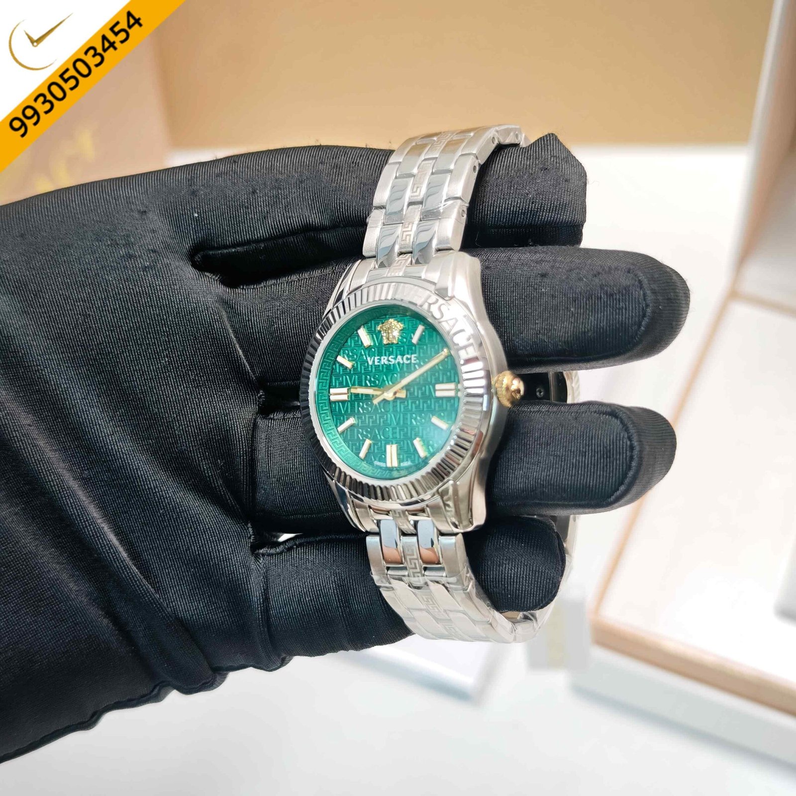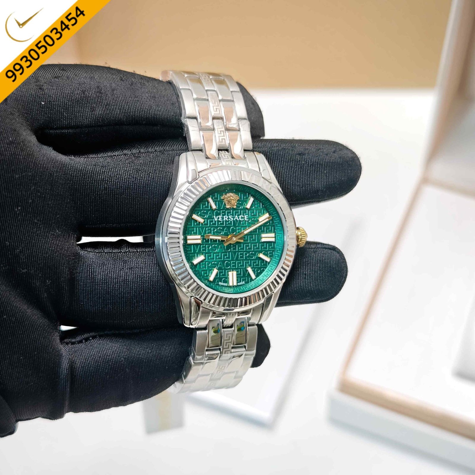 Versace Greca Steel Green Dial Swiss Watch
