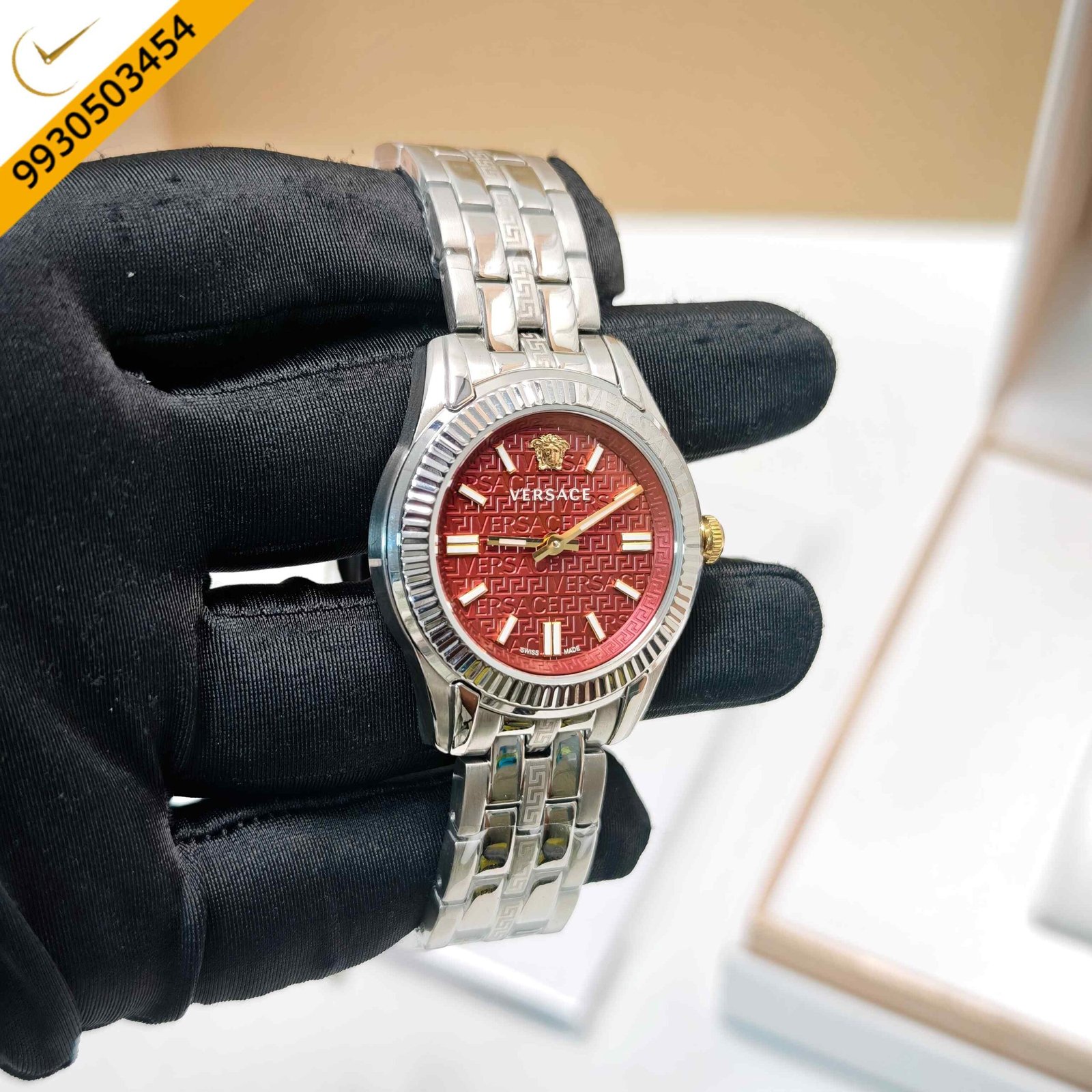 Versace Greca Steel Red Dial Swiss Watch