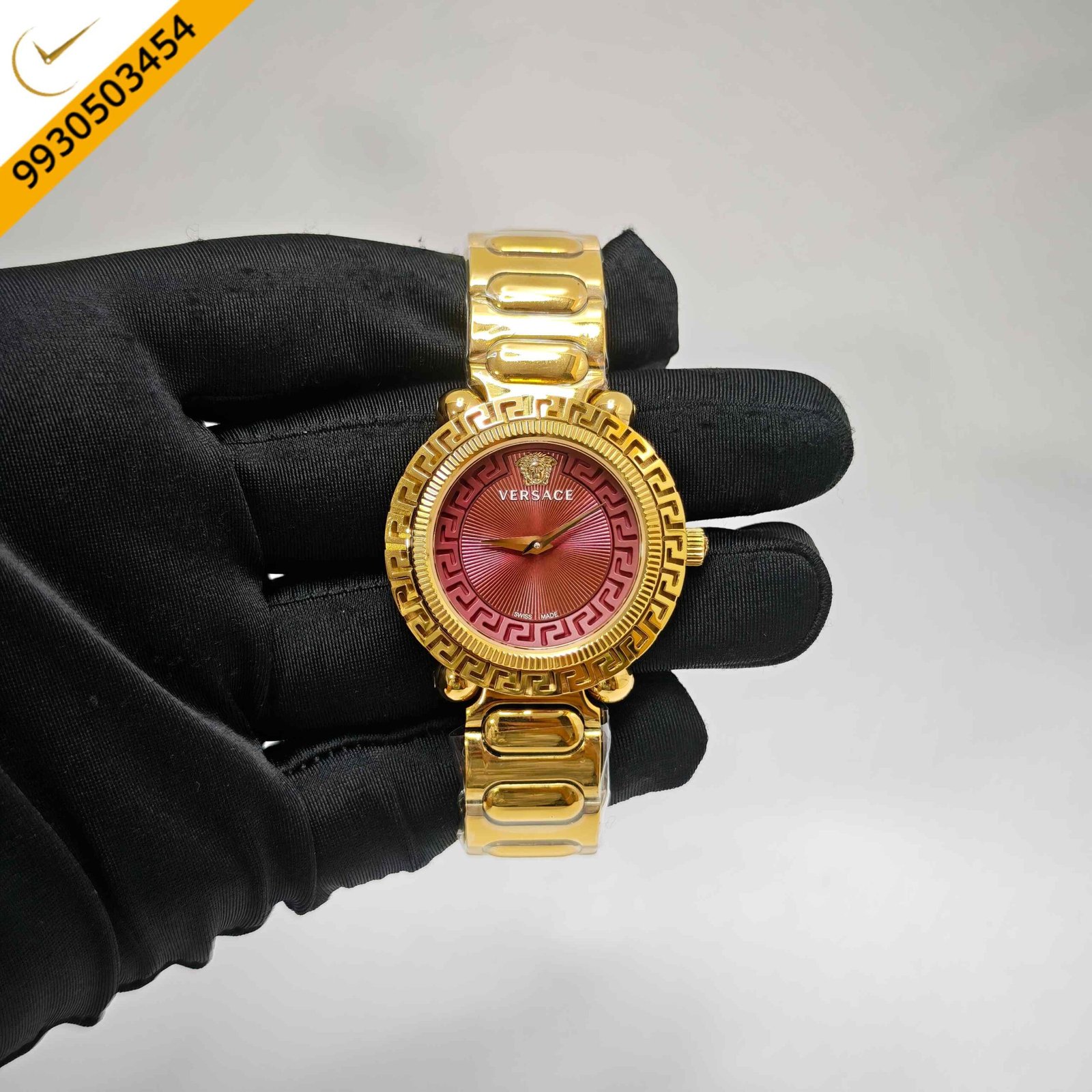 Versace Greca Twist Gold Red Dial Swiss Quartz Watch